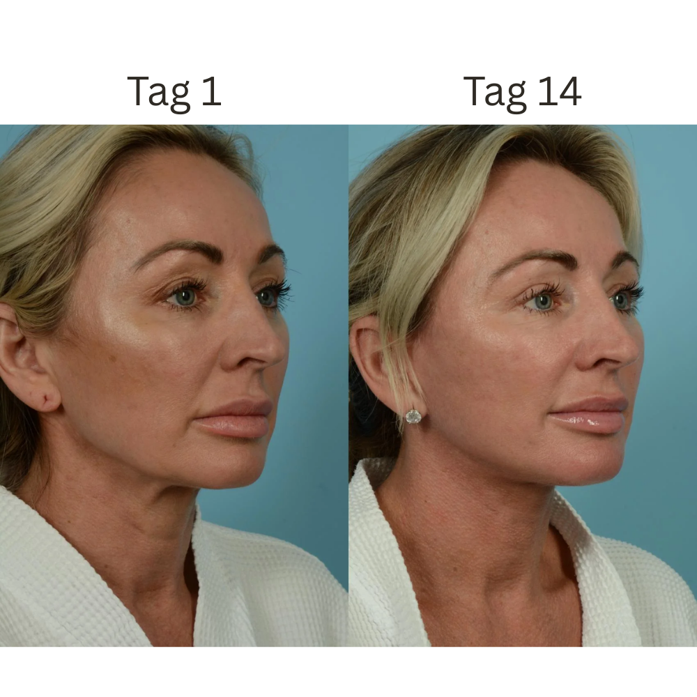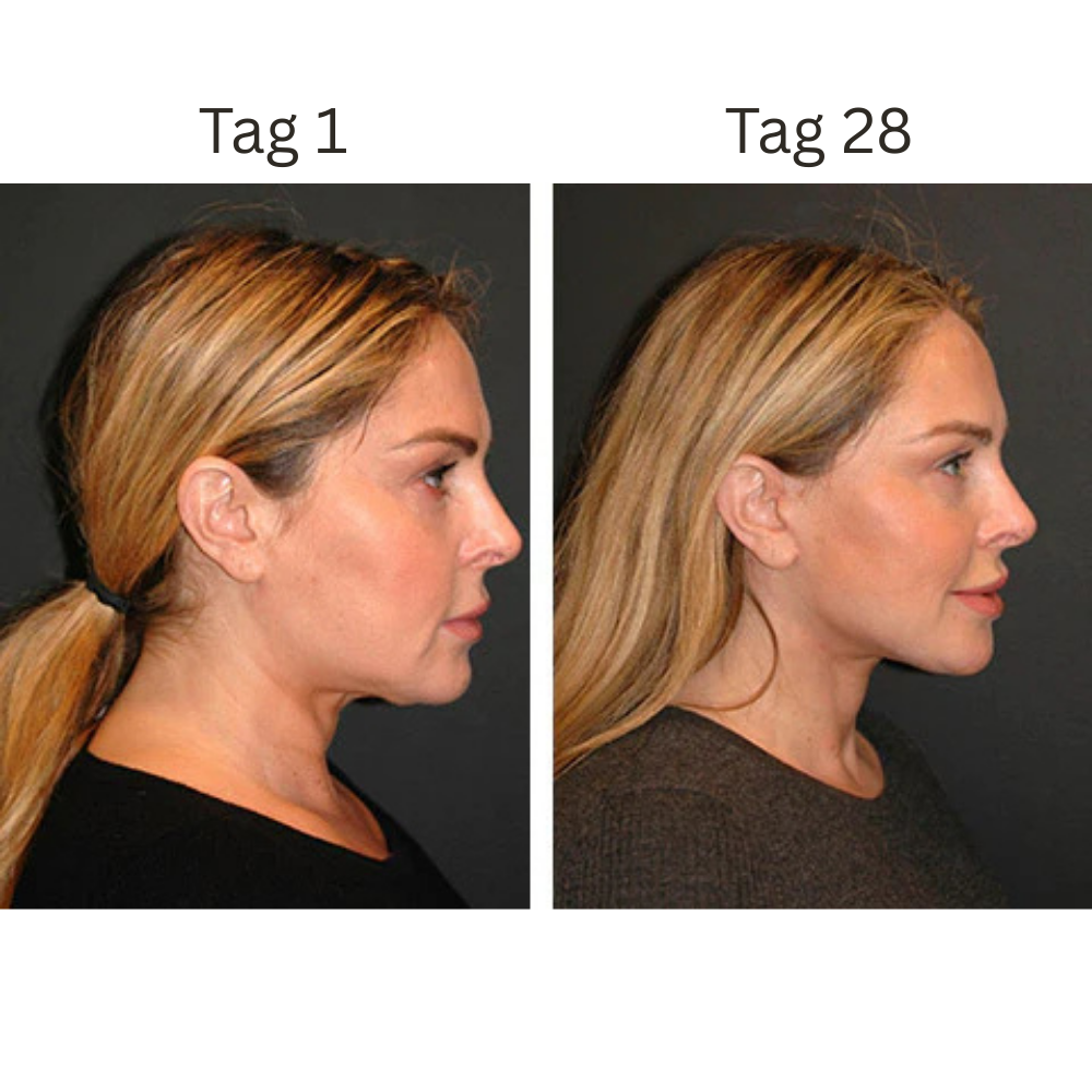 Berichten das ihre Kieferlinie, Wangen und Hals für ein jugendliches Aussehen hebt.